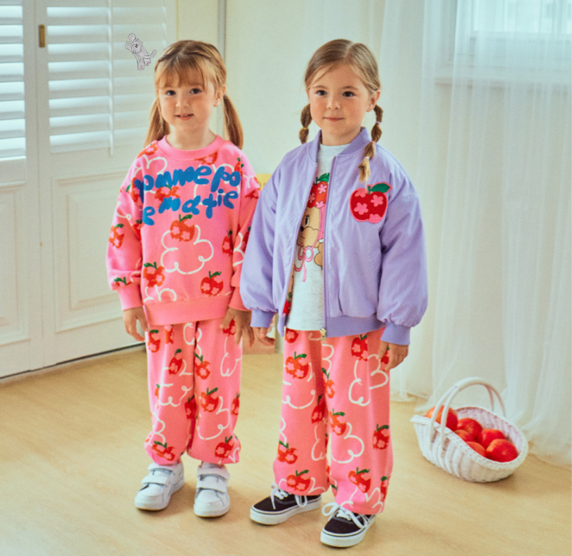 BEBEBEBE FALL Flower apple frill knit SET (PINK)